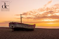 The now abandoned fishing boats on the shingle beach are a reminder of Aldeburgh's once thriving fishing industry. This photograph features one of these boats at sunrise.